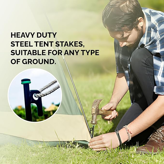 - PREMIUM DURABILITY: Our heavy duty tent stakes are carefully crafted from premium-grade steel to offer non-bend durability, this ensures that metal stakes can survive the most difficult outdoor challenges and remain sturdy over time, providing you with unwavering support during your camping adventures.