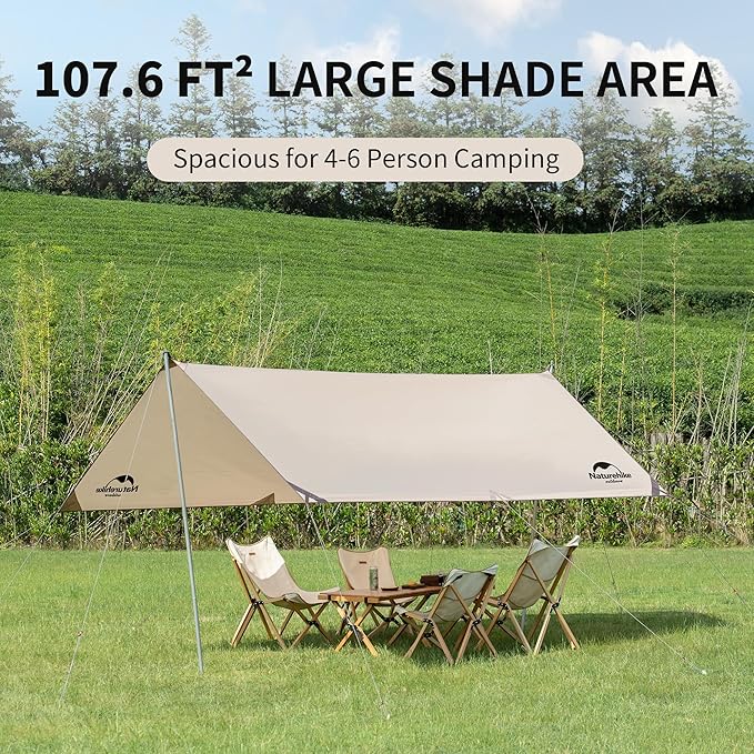 Naturehike Camping Tent Tarp,Camping Awning with Poles,Tent Canopy Rain Fly, Camping Sun Shelter for 8-10 Person Camping, Party, Picnic, Family Camping