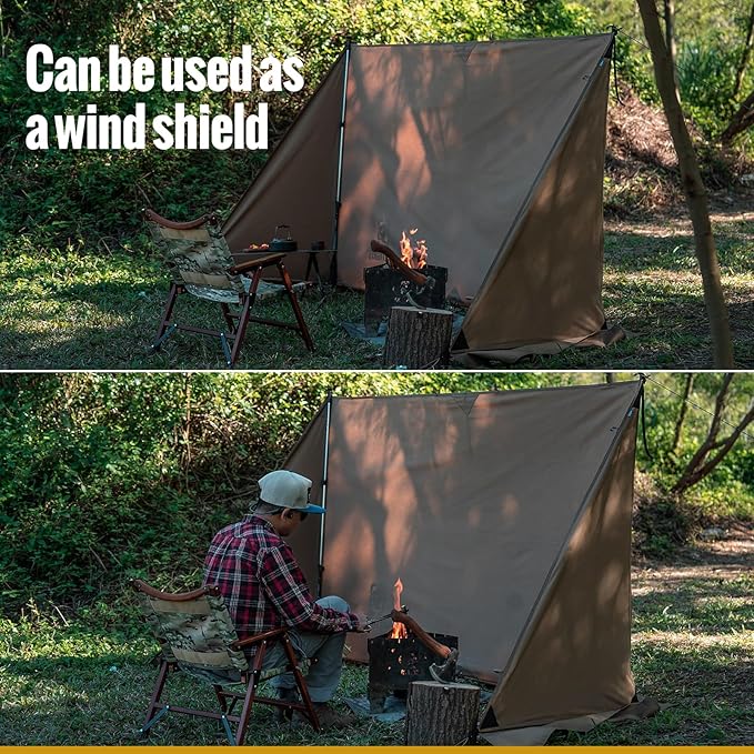 - Funtion: Primary functions as a wind blocking tarp that offers protection against the wind and better privacy, to use with a camping stove or other outdoor kitchen equipment. Also works as a ground mat to protect campers from discomfort and sharper objects like small twigs and stones