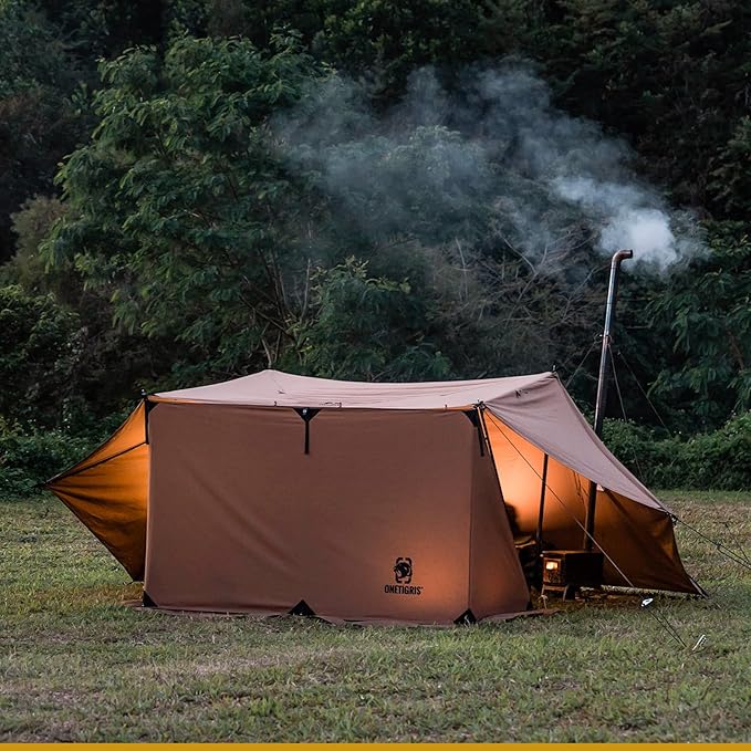 - For winter use, this tarp can help create a fully enclosed outdoor camping space when connected with the ROCK SHIELD T/C Bushcraft Shelter or similar, for use with a burning stove to stay warm and cozy