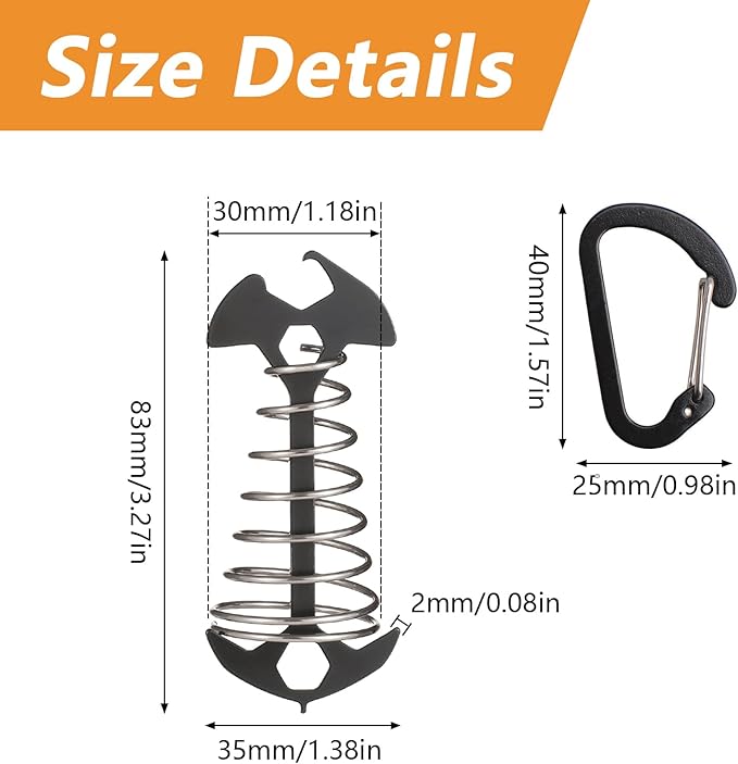 - π[Slip & Adjustable Spring]: These deck nails are designed in the shape of fish bones, and the bottom double hook design creates stability better and prevents the nails from falling off or rotating due to the shaking of the tent. The telescopic spring shape can be adapted to decks of different thicknesses.