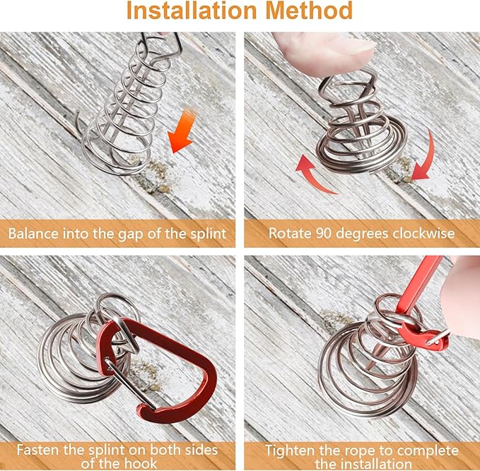 - π[Easy installation] D-shaped carabiner is attached, which is convenient for you to fix the tent on the octopus deck nails. The installation method is very simple. Just insert it into the gap and rotate it to fix it. Binding with D-shaped carabiner and tent rope