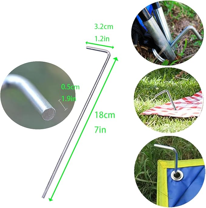 - Versatile and Reliable: Not only suitable for fixing tents, our heavy-duty tent stakes are also perfect for securing pop-up tents, marquees, Christmas decorations, tarpaulins, and garden structures. Their universal design makes them a professional tool for any outdoor setup, providing stability and reliability.