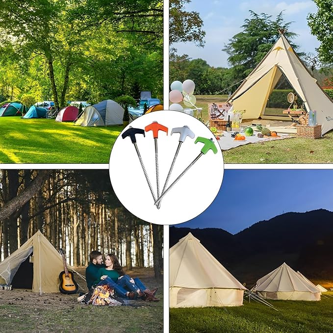 - ⛺【Easy to Use】Our tent stakes set up faster so you can sit back and drink a beer while watching other campers struggle. With the help of a cordless drill or impact driver, these easy-to-use stakes will secure your tent, canopy, gazebo, awning, guy rope or tarp to the ground in seconds