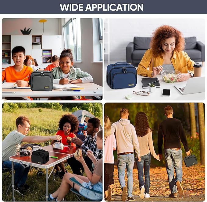 - [SPACIOUS AND VERSATILE] With a generous capacity, this insulated lunch box easily accommodates your entire meal. The spacious main compartment offers ample space, while the front and side pockets provide additional storage for utensils, napkins, keys, or small essentials. The large lunch bags for men measures 11''x8.5''x9.5'', the medium cooler bag measures 10''x8''x8'' and the small measures 9'x5'x7.5'