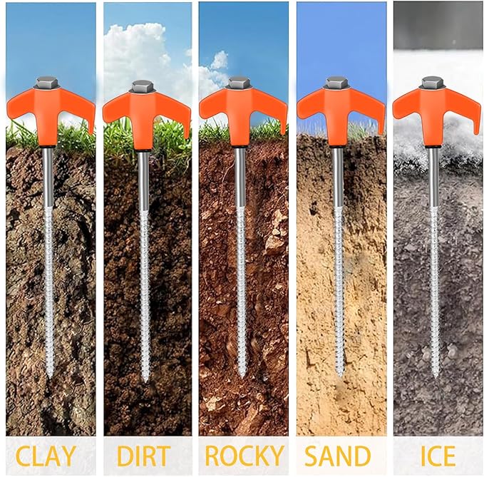 - EASY INSTALLATION :Our tent pegs are designed with smooth metal threads and come with a magnetic tent peg adapter, which can be quickly and easily fixed on the ground using a cordless drill or impact driver, and can be set up simply and easily in a wide range of terrains
