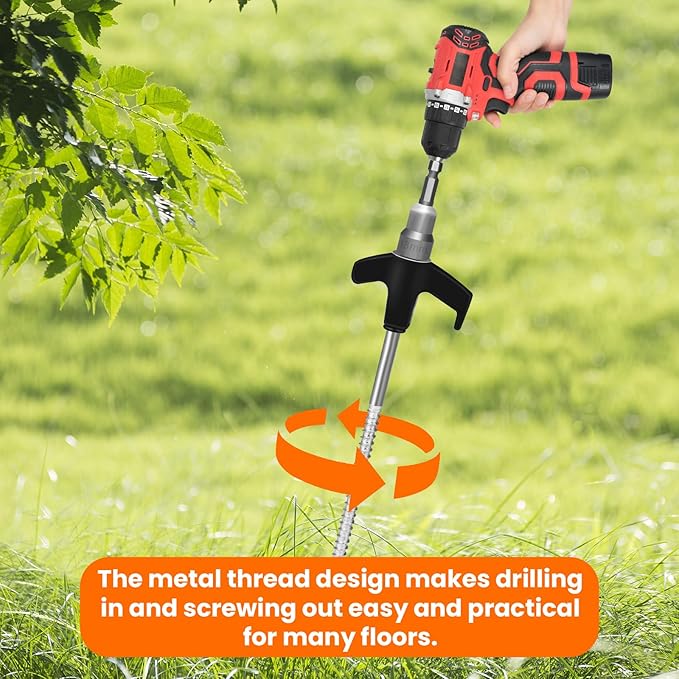 - EASY INSTALLATION :Our tent pegs are designed with smooth metal threads and come with a magnetic tent peg adapter, which can be quickly and easily fixed on the ground using a cordless drill or impact driver, and can be set up simply and easily in a wide range of terrains