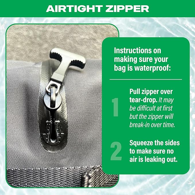 - Waterproof Zipper, airtight and pressure resistant to keep your goods perfect and dry. Protect your belongings from dust, water, snow and rain, and enjoy outdoor life. Easy to clean and durable