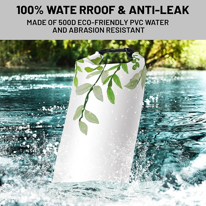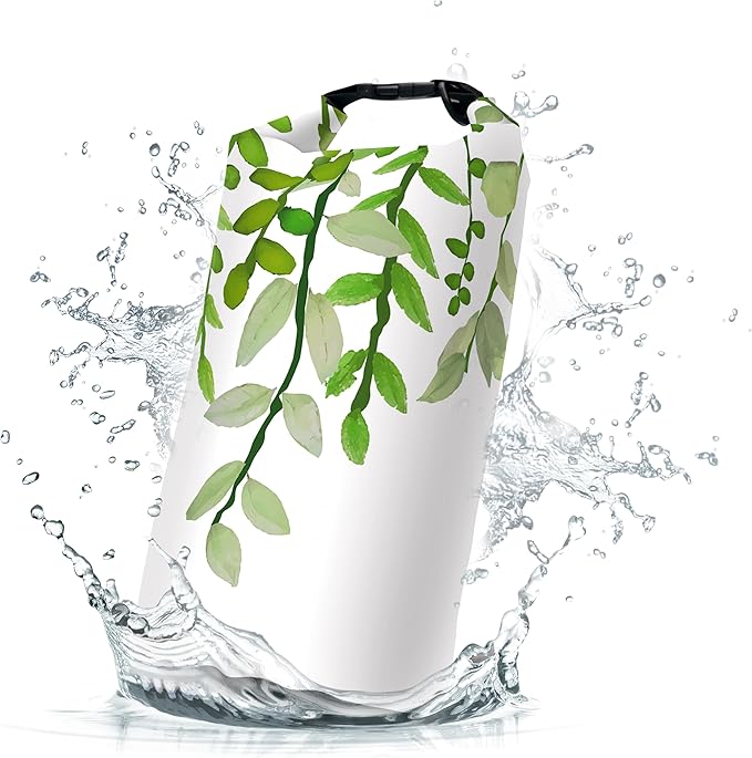 - Adjustable Carrying Options: Available in 5L and 10L with a removable shoulder strap for cross-body carry, or a 20L version featuring two adjustable straps for backpack-style comfort.Roll-top closure system provides secure watertight seal, keep your gear dry in any wet situation.Unique Watercolor Leaves design dry bag backpack Carry it your way!