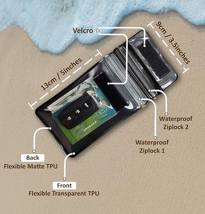 - Durable TPU Material – Crafted from robust, flexible TPU, this waterproof pouch is designed to withstand everyday wear and tear, while offering long-lasting protection for your valuables.
