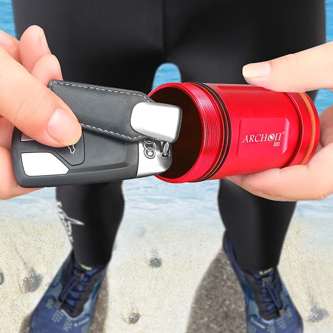 - 😜 Double-layer O-ring Design: Featuring a double-layer O-ring design, this waterproof key holder ensures effective waterproofing up to a depth of 150 meters. Tailored for professional divers, it serves as a secure storage solution for car keys and other small accessories requiring waterproof protection. The excellent waterproof performance also makes it suitable for water activities like canyoning and kayaking.