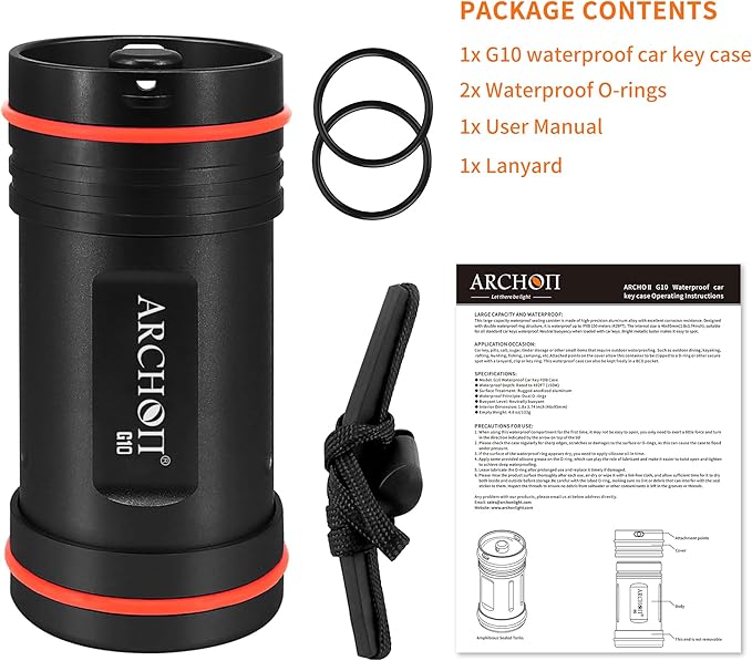 • 😜 Double-layer O-ring Design: Featuring a double-layer O-ring design, this waterproof key holder ensures effective waterproofing up to a depth of 150 meters. Tailored for professional divers, it serves as a secure storage solution for car keys and other small accessories requiring waterproof protection. The excellent waterproof performance also makes it suitable for water activities like canyoning and kayaking.