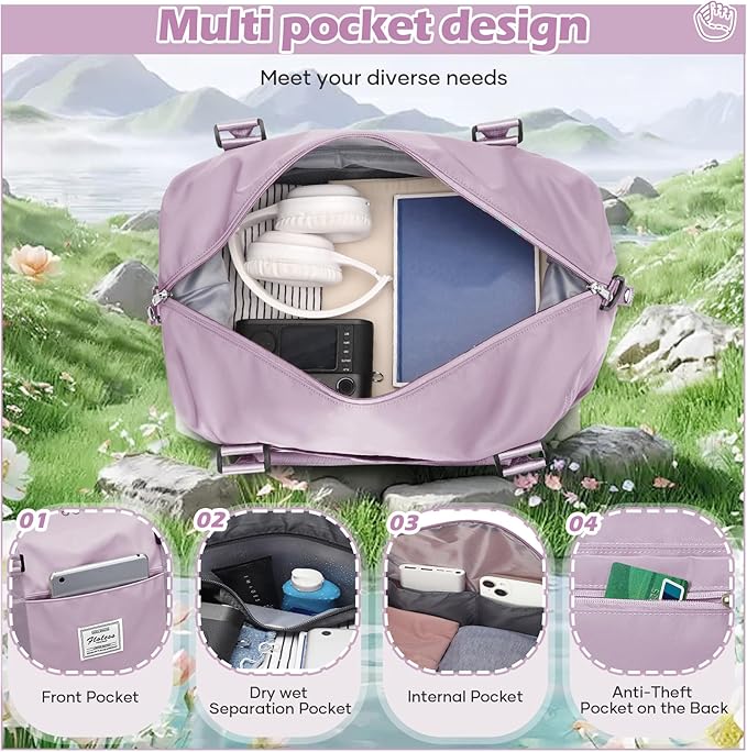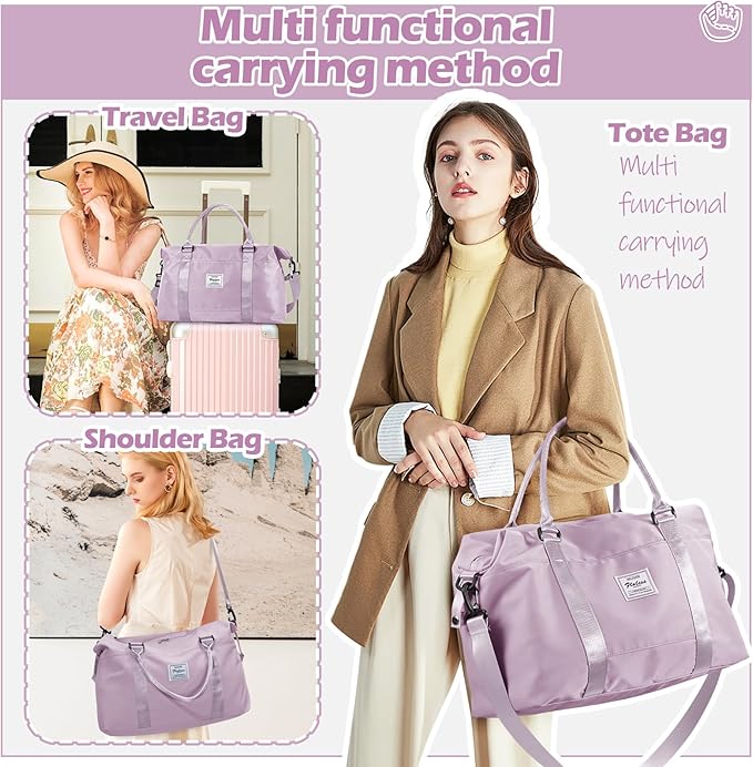 Small Gym Bag for Women, Purple Stylish Duffle Travel Bag for Plane, Lightweight Duffle Bag for Women, Sport Gym Tote Bag with Wet Pocket for Yoga, Pilates, Swimming