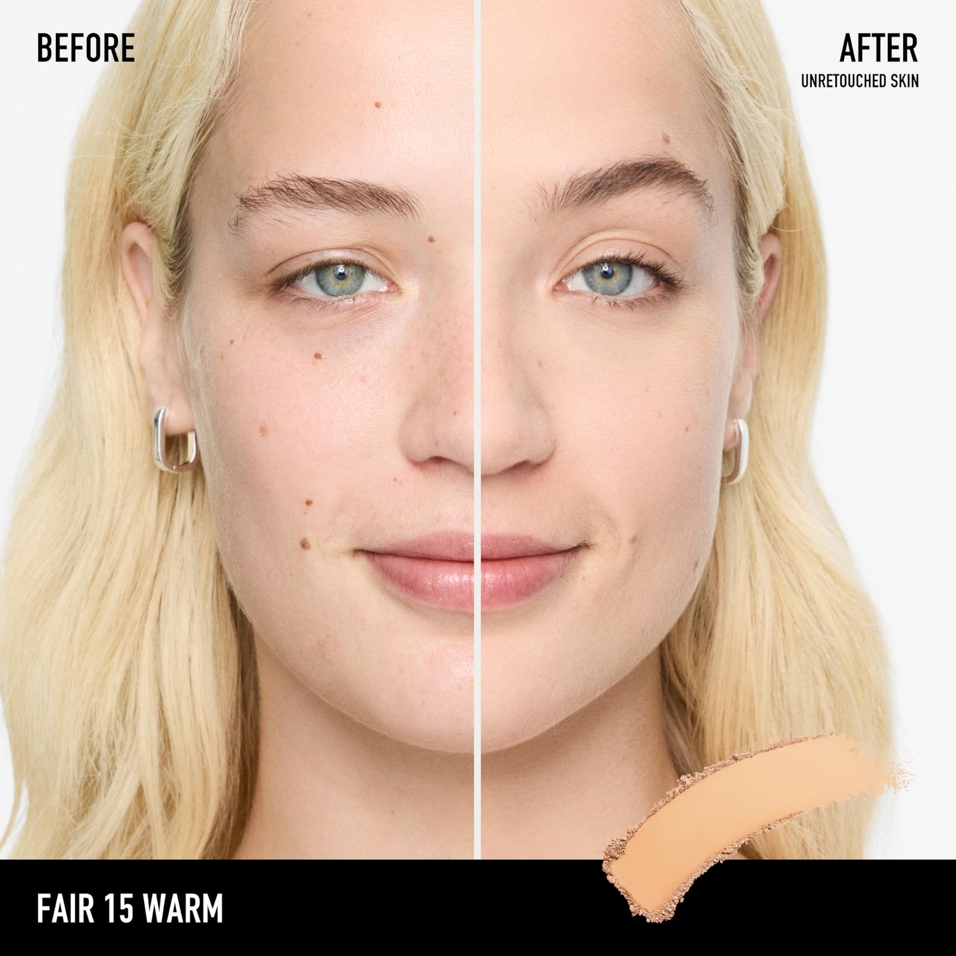 - Visibly evens skin tone and texture over time to perfect the look of bare skin. Non-drying and absorbs oil. Can be used wet or dry.