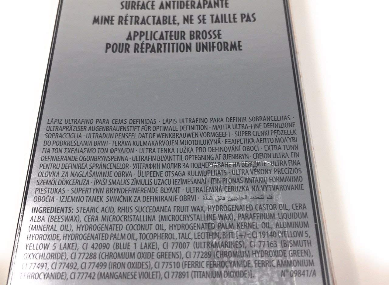 Details: A dual-end super-fine eyebrow pencil Boasts a waterproof budge-proof & 12-hour wear formula Features a twist-up non-sharpen tip on one end & a built-in spoolie-brush on the other Draws incredibly natural-looking hair-like strokes Provides rich blendable color to fill & define brows Available in a range of shades for selection