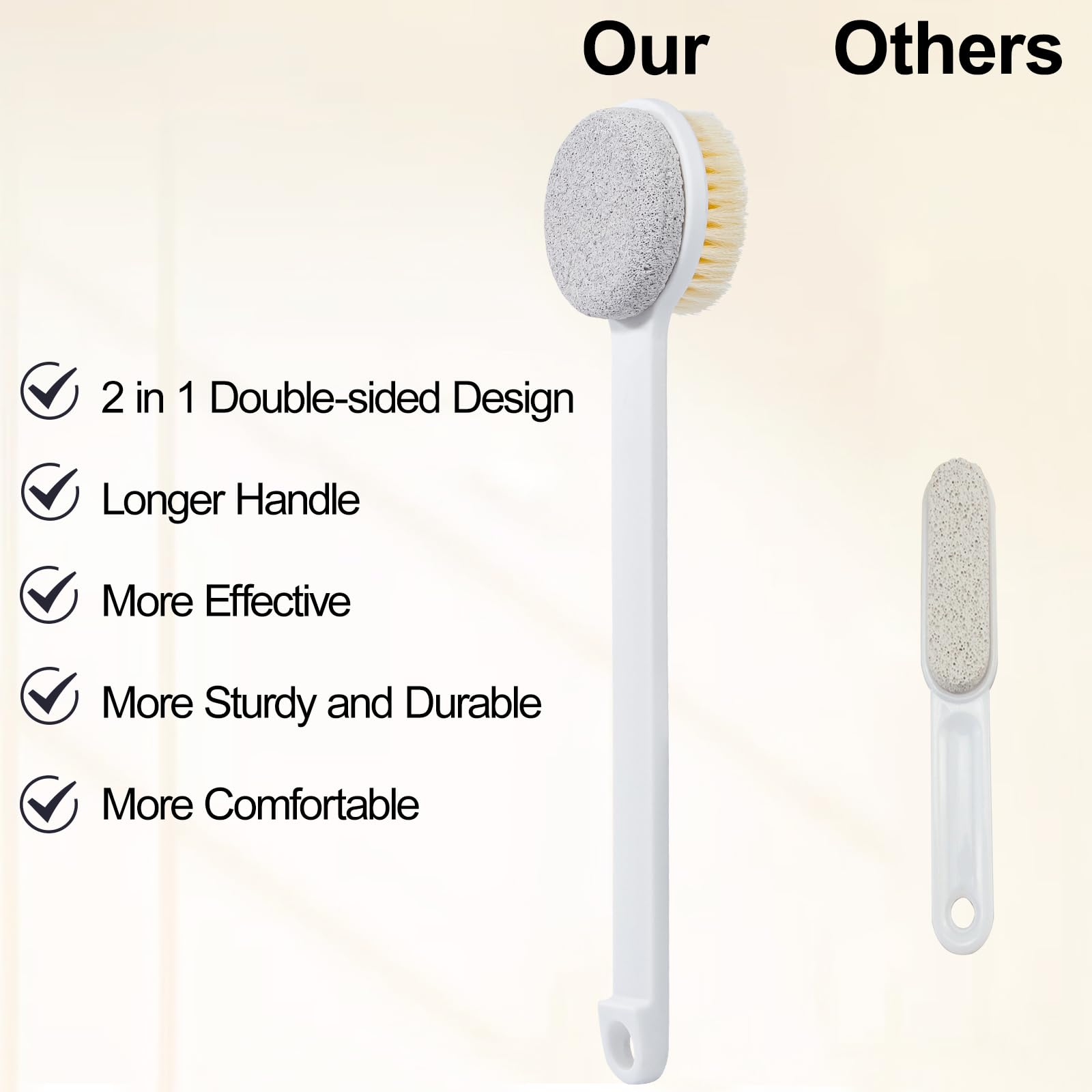 - 2-in-1 Design: This foot scrubber combines a pumice stone and shower brush for deep cleansing and exfoliation of dry, calloused skin
