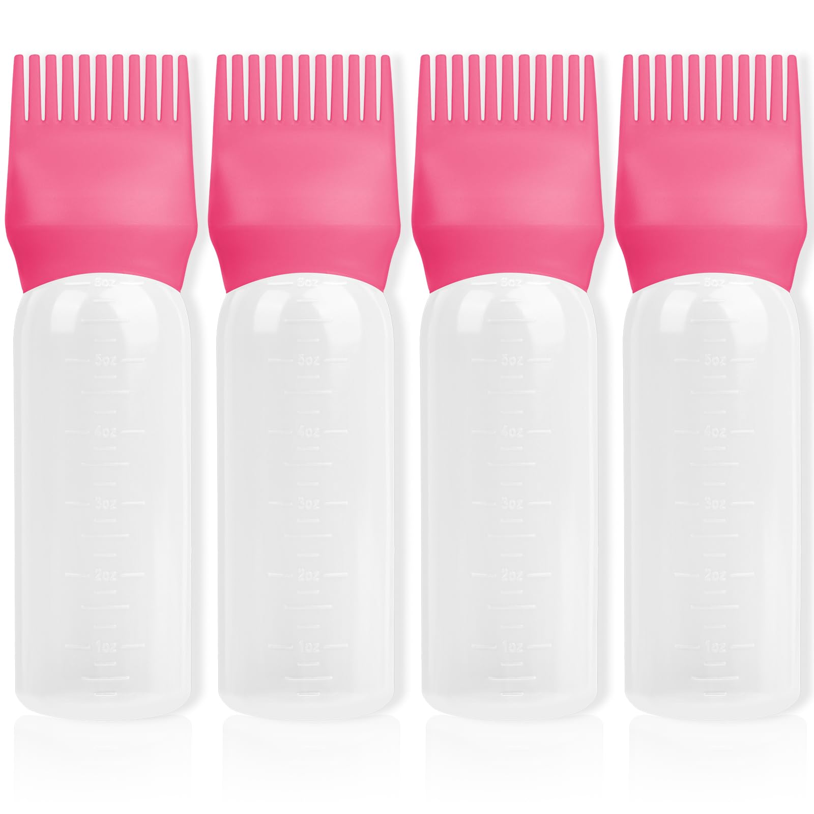 BLAAROOM Root Comb Applicator Bottle 6 Ounce, 4 Pack Hair Oil Applicator Bottle, Hair Dye Bottle Applicator Tools with Hair Oil Dispenser Root Comb Brush for Hair Oiling Applicator - Dark Pink