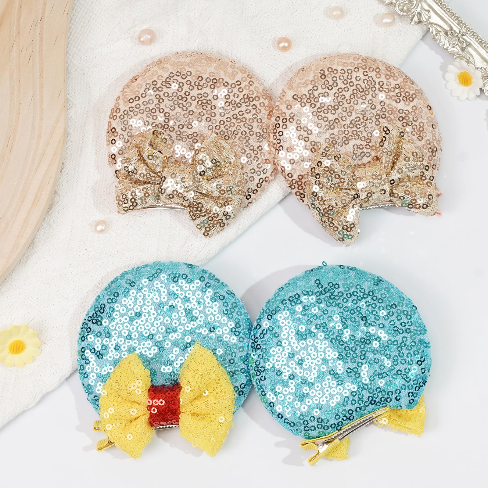 CellElection 8PCS Sequin Mouse Ears Hair Clips Glitter Hair Bows Cute Mice Ears Clips Barrettes for Women Girls Hair Accessories for Costume Party Favor Halloween Christmas Decoration