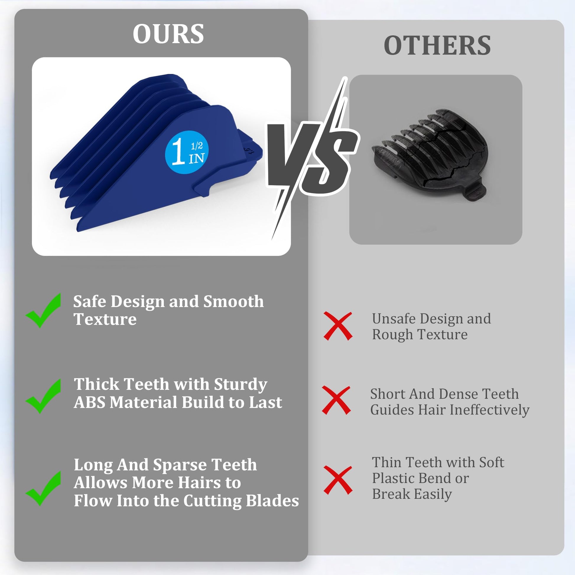 - Enhanced Secure Fit & Ultra-Smooth Cutting Experience: Unlike standard guards, our upgraded design features a reinforced clip-on mechanism that locks firmly in place, preventing slipping during use. The rounded edges and precision-cut teeth allow for a glide-through experience, reducing snagging and discomfort. Achieve a clean, professional-looking haircut with confidence and ease every time