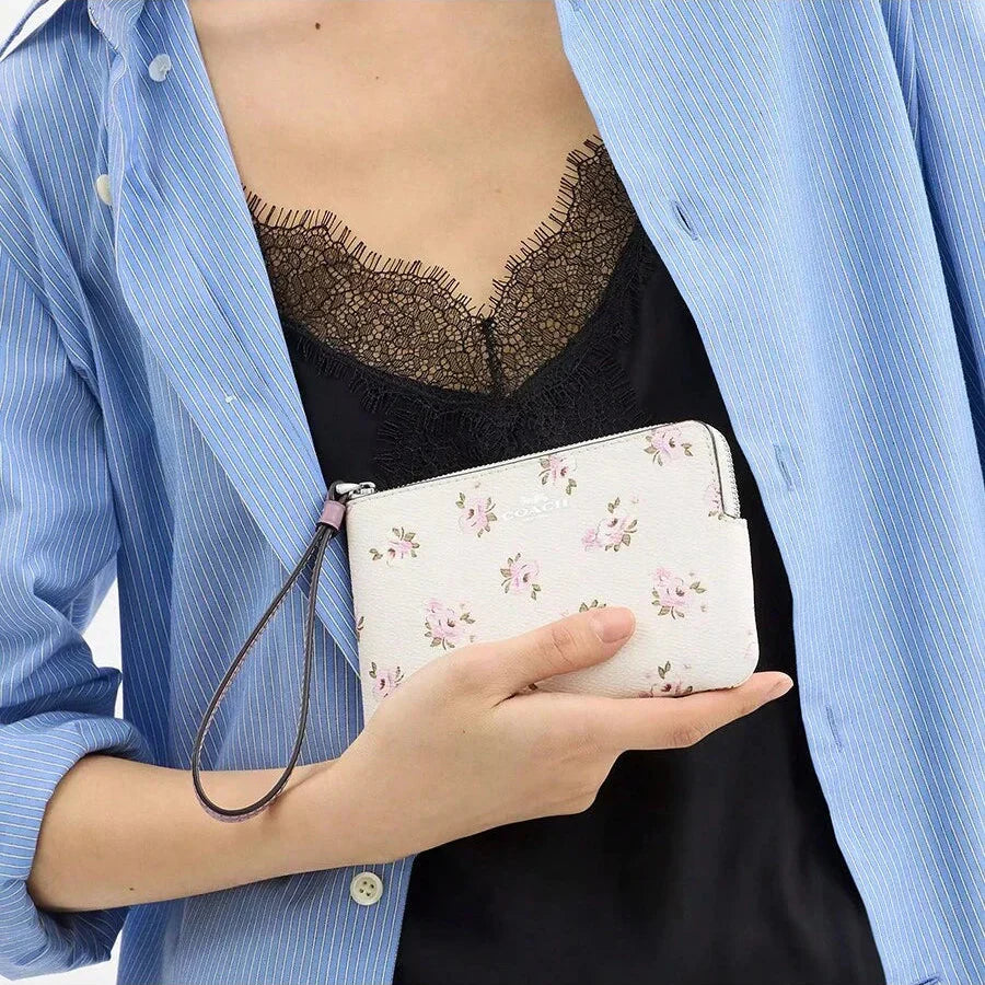 The Coach Corner Zip Wallet Wristlet Bag combines sophisticated design with practical functionality. Crafted from premium materials, it features a secure zip closure and a convenient wrist strap, allowing for easy carrying. Its organized interior compartments keep essentials like cards, cash, and keys neatly accessible, making it an ideal accessory for streamlined daily use or stylish travel. This wristlet offers a durable, elegant solution for those who value both style and efficiency.