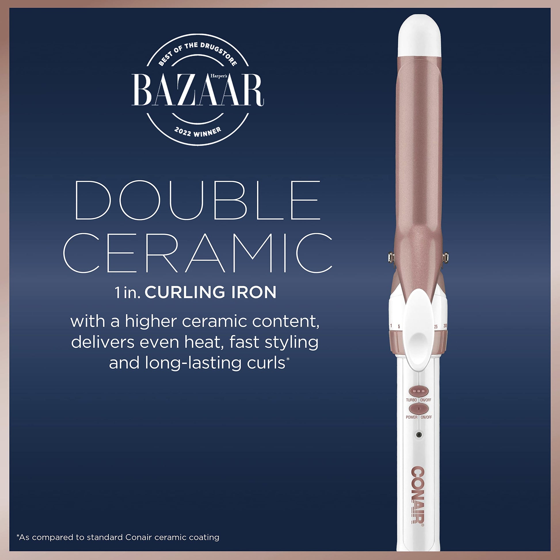 Conair Double Ceramic 1-Inch Curling Iron, 1-inch barrel produces classic curls – for use on short, medium, and long hair