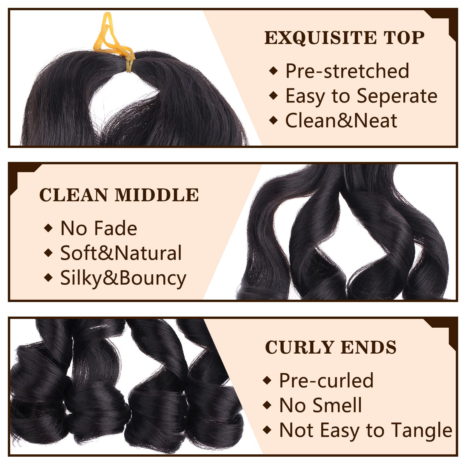 - 【Product Material】French Curl Synthetic Braiding Hair Extensions is made of high-quality high-temperature synthetic fibers. The Bouncy Braids Hair is soft and comfortable to wear. The unique curly hair at the tail is the highlight of this hair.