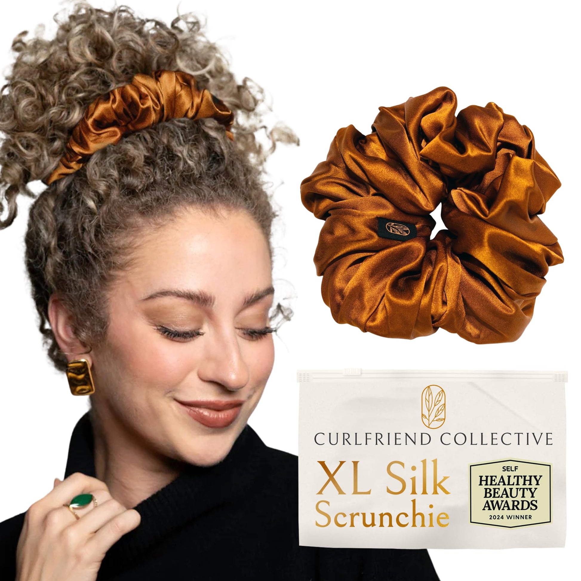 Details: Curlfriend Collective's Real Mulberry Silk Scrunchies are a dream for anyone with thick, curly, wavy, or coily hair. Made from premium 100% 6A Grade 22 Momme Mulberry Silk, they are gentle on your hair, preventing frizz, breakage, and dents. These extra-large scrunchies stretch up to 13 inches, offering a comfortable hold for any hairstyle and hair density. Safety is a priority, as they meet the OEKO-Tex Standard 100 for quality. Proudly female-owned, our brand creates products with a deep understanding of your curly hair's unique needs. Diameter: 6.5 inches Elastic: 4 to 13 inches (stretched) Thickness: 2 inches Wraps 1-3 times around hair.