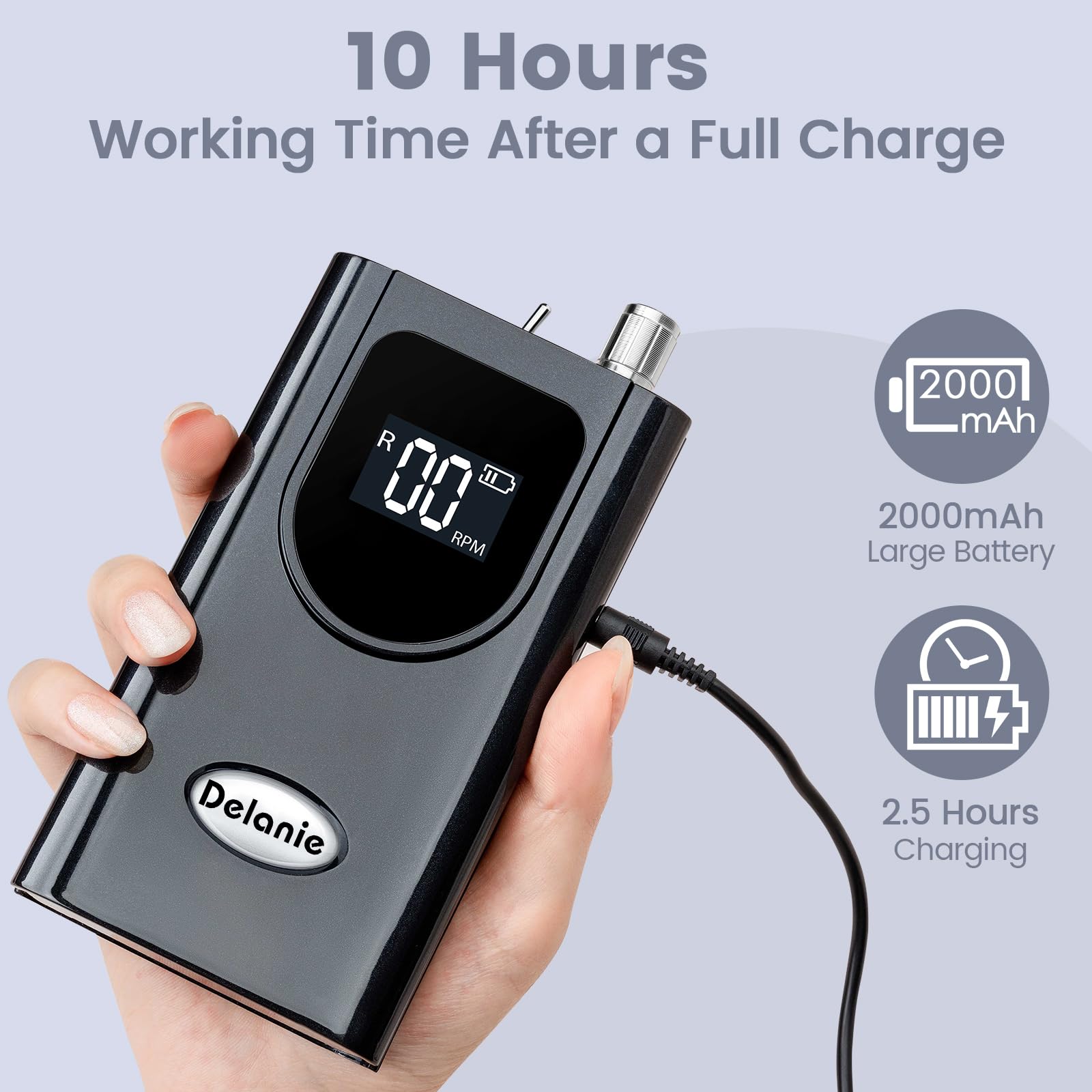 Delanie Professional Nail Drill High Torque 35000 RPM Rechargeable Portable Electric Nail File Filer for Acrylic Gel with Cuticle Bits, Salon Manicure Tool, Black