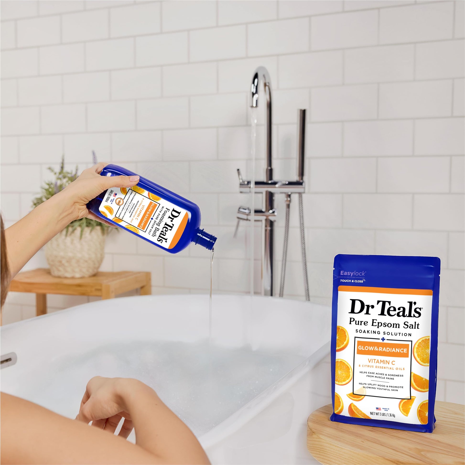 Dr Teal's Salt Soak with Pure Epsom Salt, Glow & Radiance with Vitamin C & Citrus Essential Oils, 3 lbs (Pack of 2)