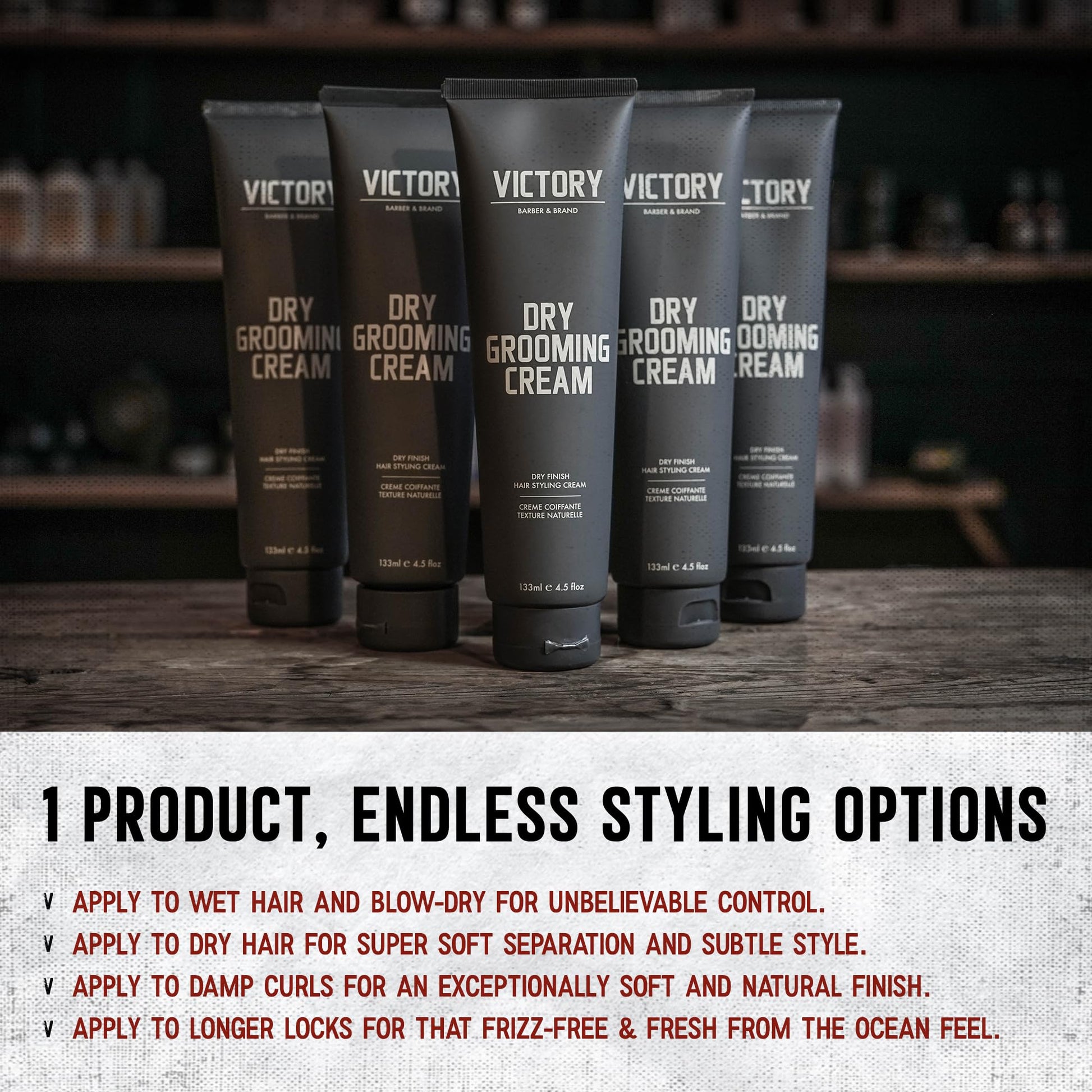 - AS VERSATILE AS YOU ARE – Soft separation, subtle style, beachy wisps, incredible blowdry control… The list for what Victory’s Dry Grooming Cream can do goes on and on. You can use it on dry, damp, or wet hair with a blowdry – your options are endless. Don’t limit yourself with other hair products. Use Victory Brand Dry Grooming Cream to get the style you DESERVE.