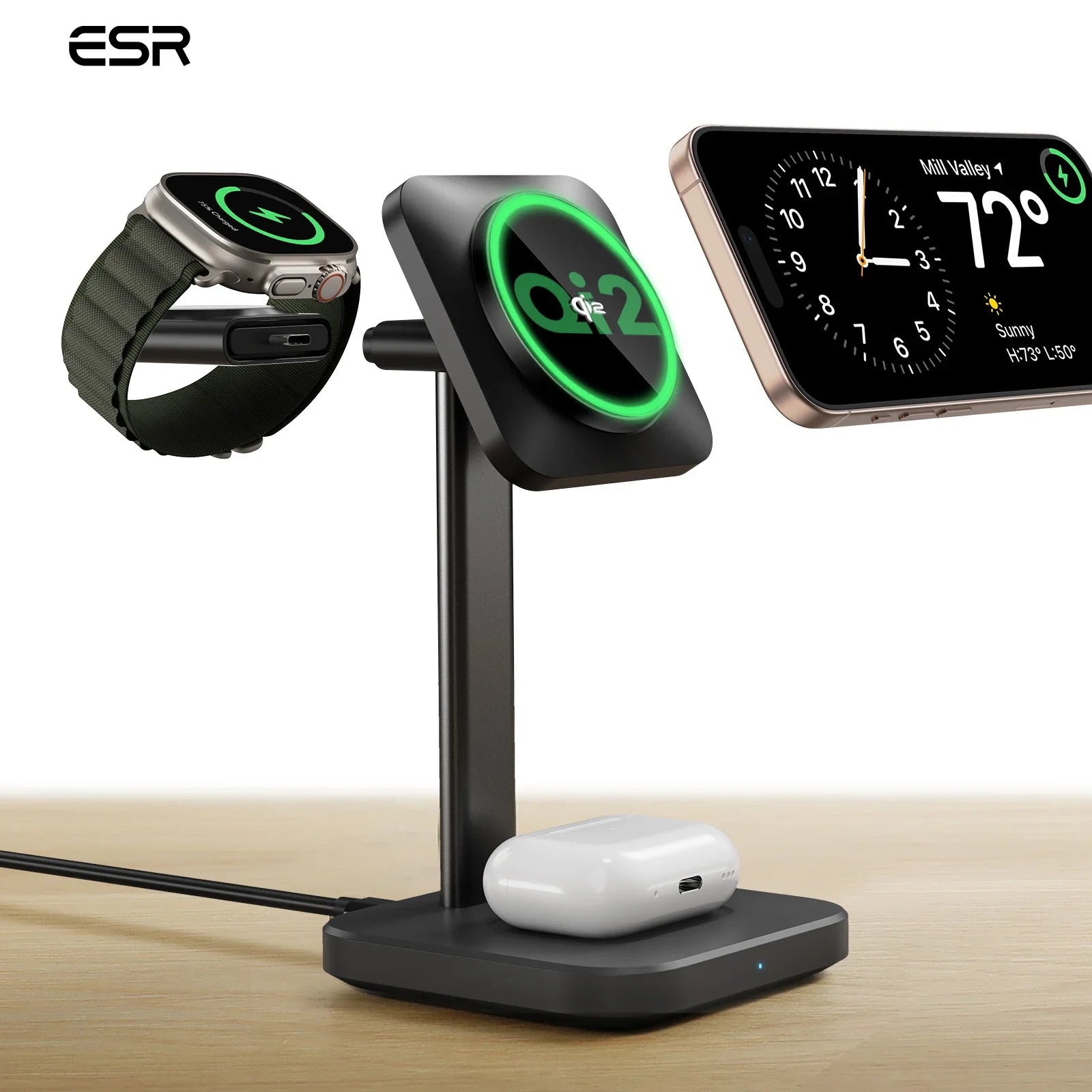 The ESR 3-in-1 Qi2 Wireless Charger offers seamless charging for your Qi-enabled smartphone, smartwatch, and wireless earbuds simultaneously. Designed with advanced Qi2 technology, it ensures efficient power delivery and stable connection. Its sleek, compact design fits conveniently on any desk or nightstand, reducing cable clutter. Ideal for users who prioritize convenience and efficiency, this charger simplifies powering multiple devices with one reliable, expert-grade solution.