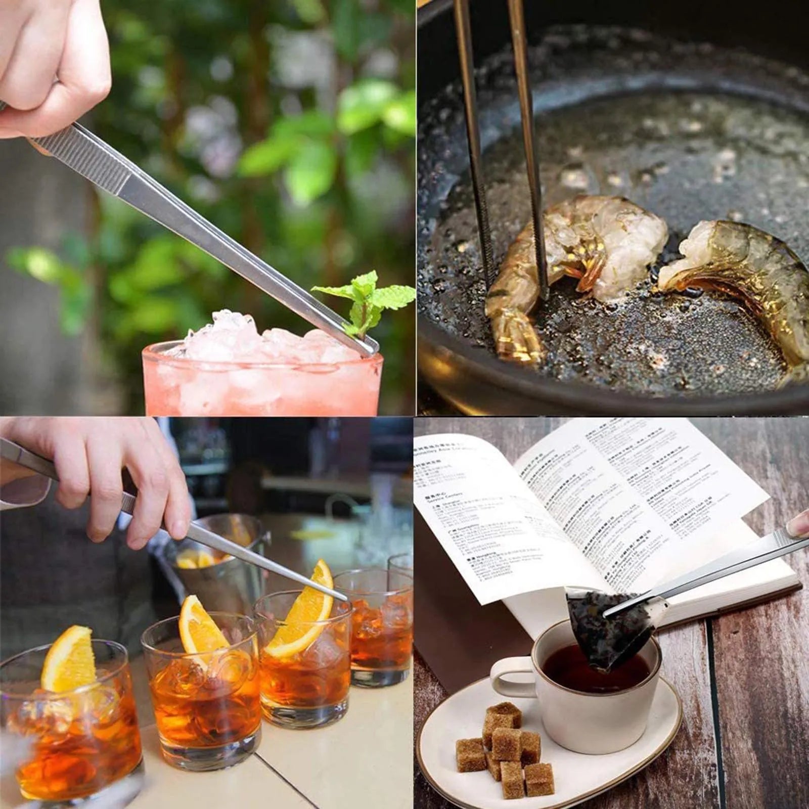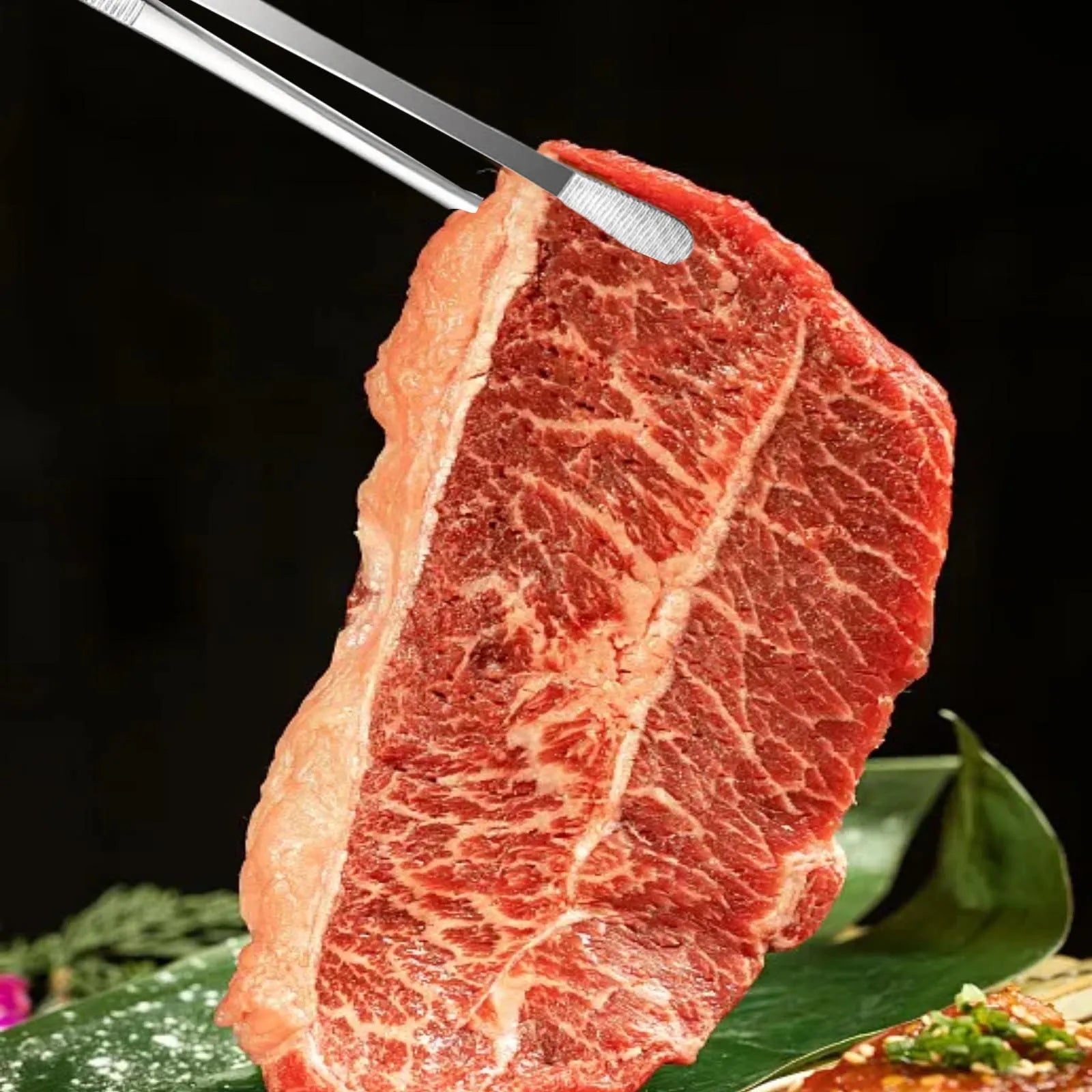 These precision cooking tongs come in a pack of two, each measuring 30 cm in length for safe handling during deep frying and other cooking tasks. Crafted from durable stainless steel, they feature serrated tips that provide a secure grip on food, enhancing control and precision. Their extra-long design keeps your hands safely away from heat, making them ideal for frying, grilling, and serving. A reliable tool for any kitchen, these tongs combine functionality with safety for professional-level cooking.