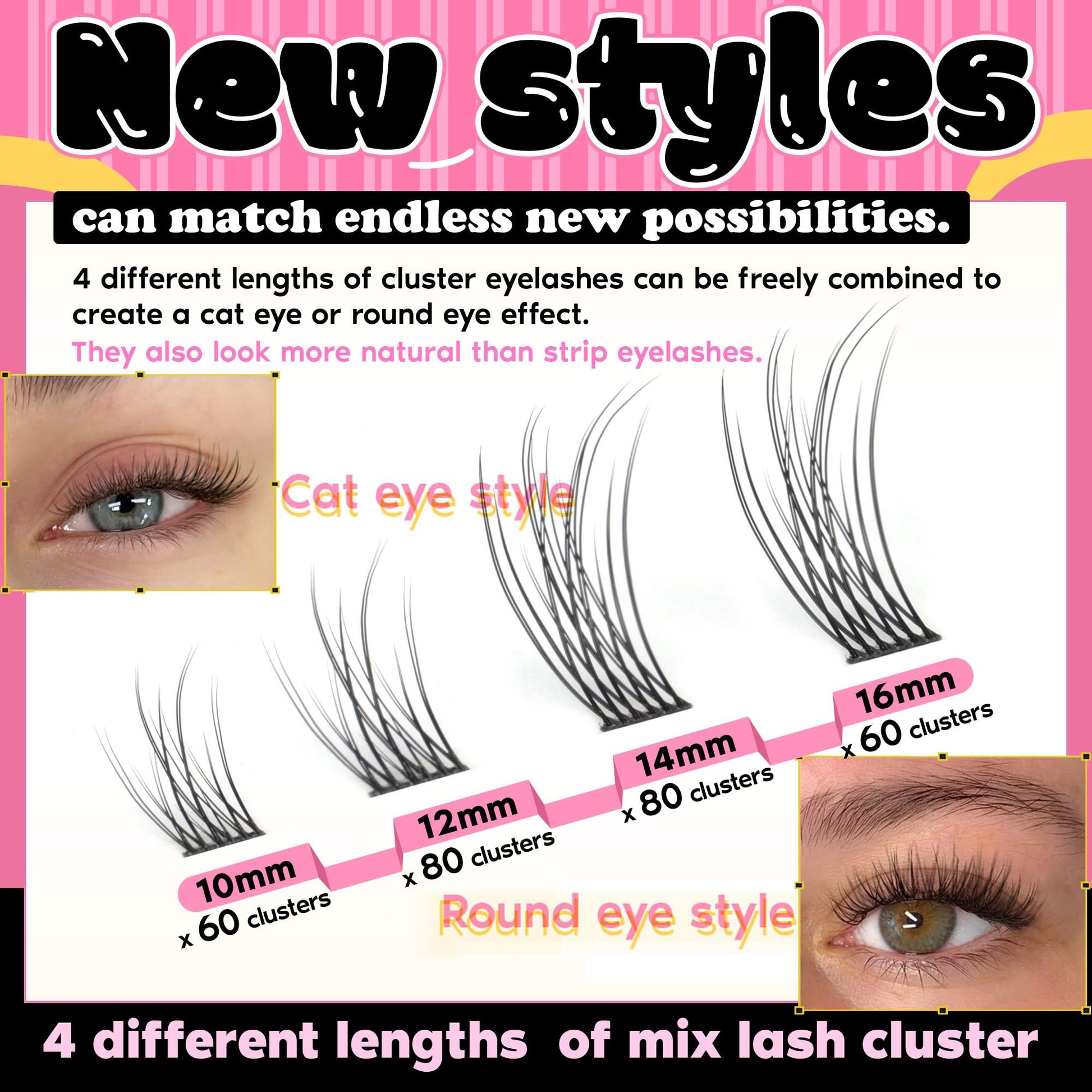 - 280 pcs eyelash clusters include four lengths of 10-16 mm, which can be paired with cat eye and round eye effects according to your needs