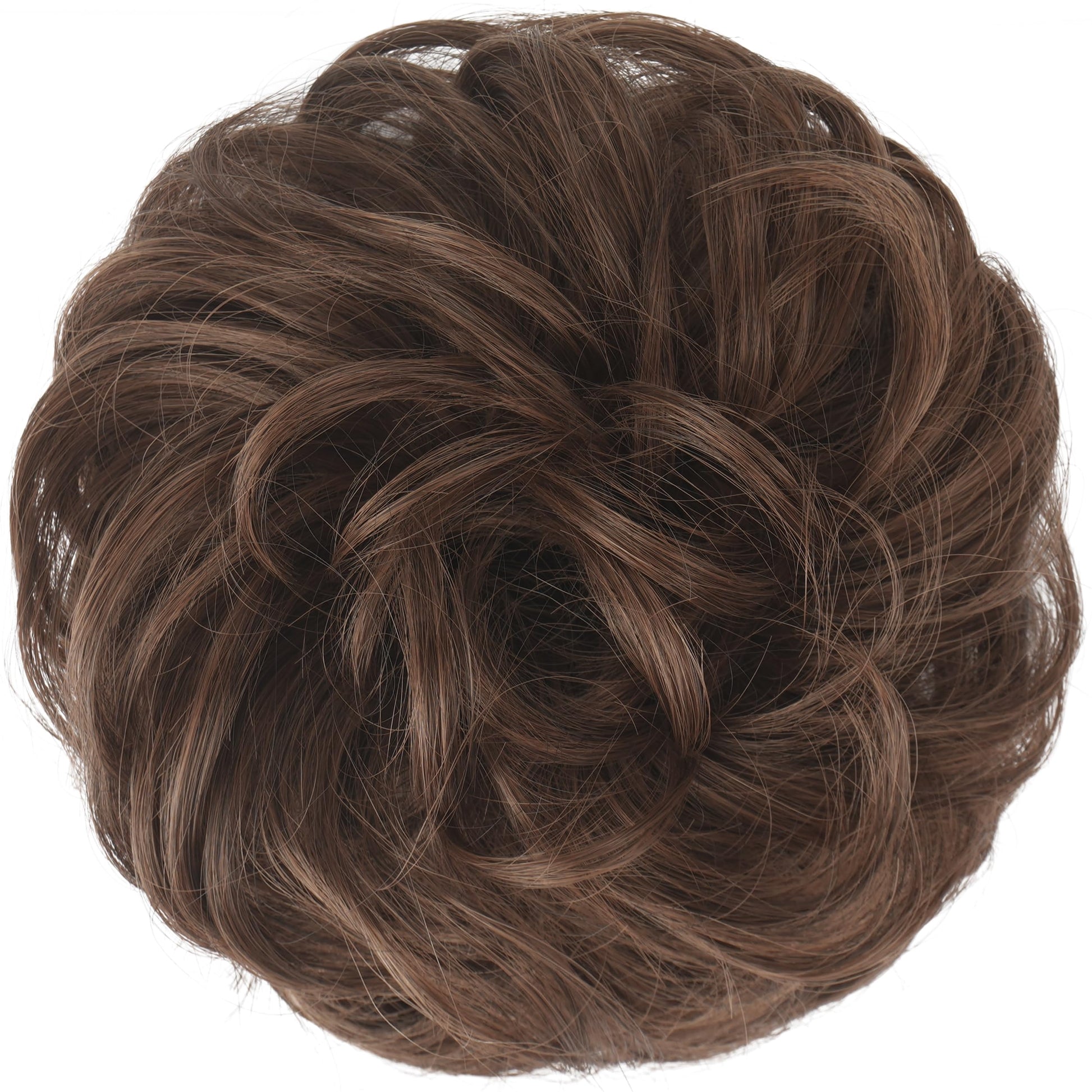 FESHFEN Messy Bun Hair Piece - Large Wavy Curly Elastic Hair Bun Scrunchies Ponytail Extensions Synthetic Chignon Hairpieces for Women, Darkest Brown 1.94oz