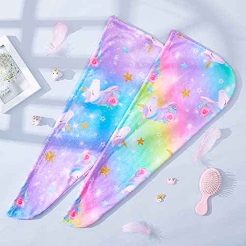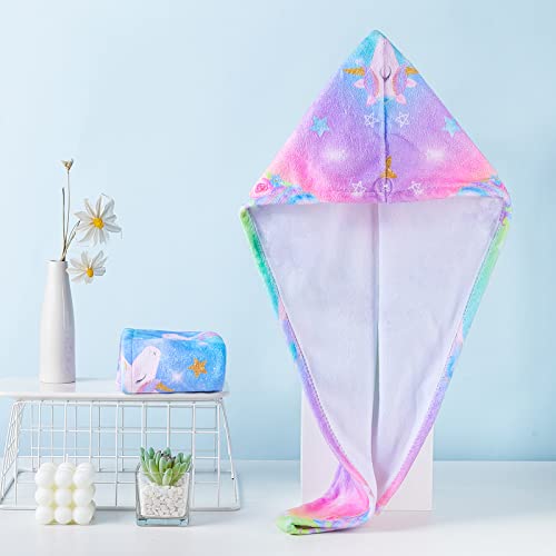 - Unique Hair Towel Wrap: Our microfiber hair towel uses rich colors and bright printed fabrics to attracted the girls attention; No girls can resist the great charm of cute and unique pattern; Each pack contains 2 different colors, then girls can share kids towels with friend or sister