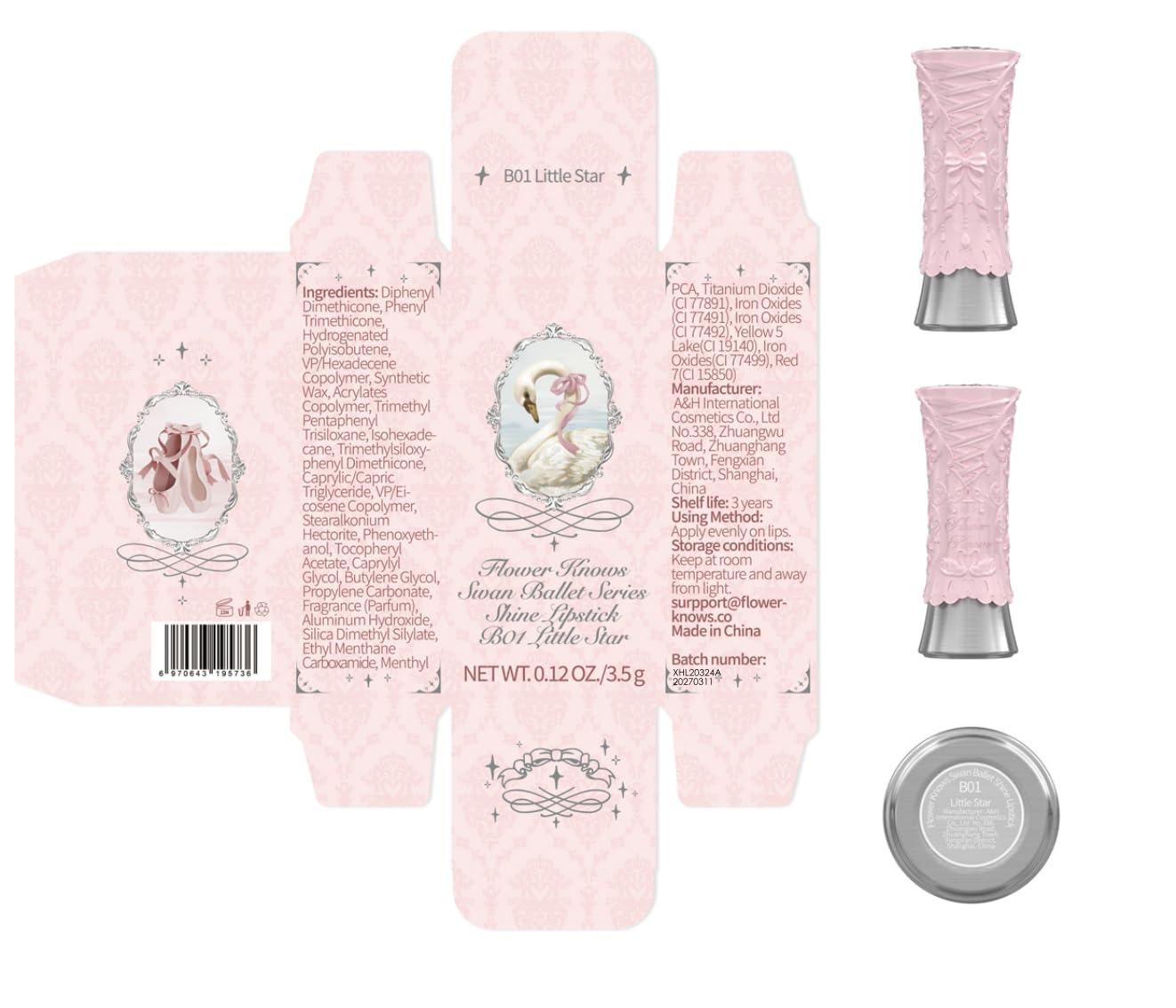 - Semi Sheer Shine Lip Gloss Stick:Experience the Flower Knows Swan Ballet Shine Solid Lip Gloss!This gloss quickly forms a smooth layer with high-shine locking technology,ensuring no fading or stickiness for that perfect jelly-like pout