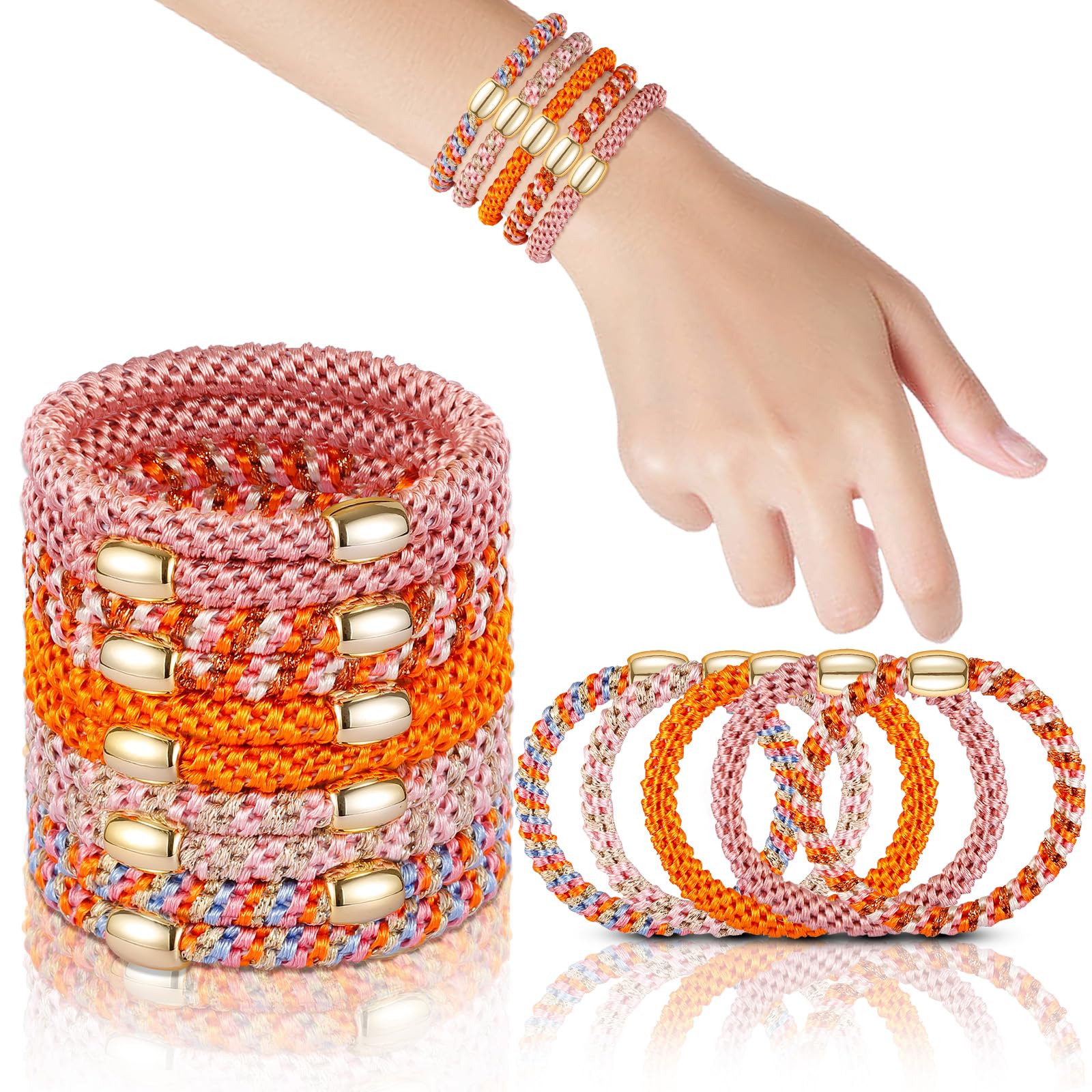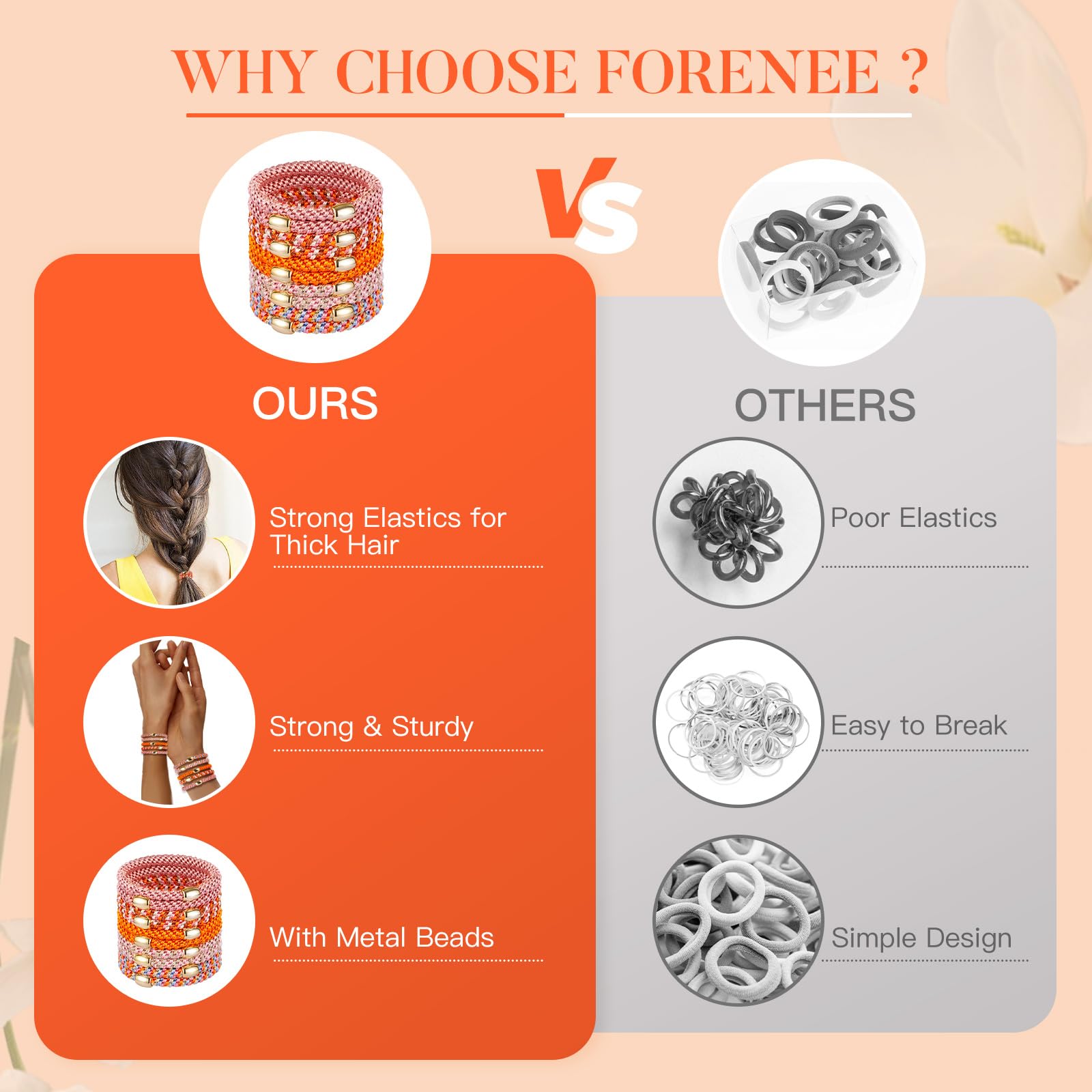 FORENEE Hair Ties No Damage - 10PCS Ponytail Holders - Elastic Hair Ties for Thick Hair - Braided Hair Bands for Women Girls's Hair - Persimmon Orange