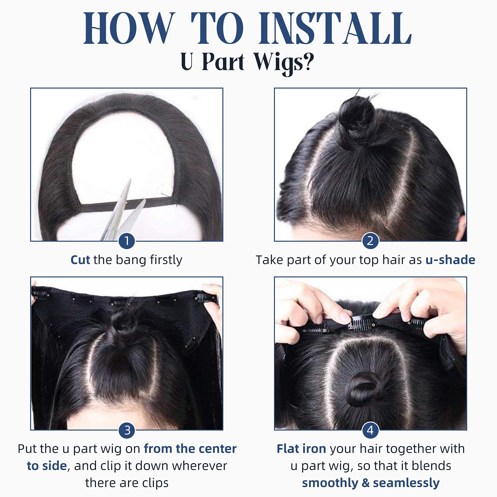 - [Real Human Hair U Part Hair Extensions] Human Hair Extensions, No Tangle, No Shedding, Silky Soft, Our Upart Human Hair Can Be Dyed, Strengthened, Curled. Just Few Seconds And You Will Get A Long Thick Hair Like Magic.
