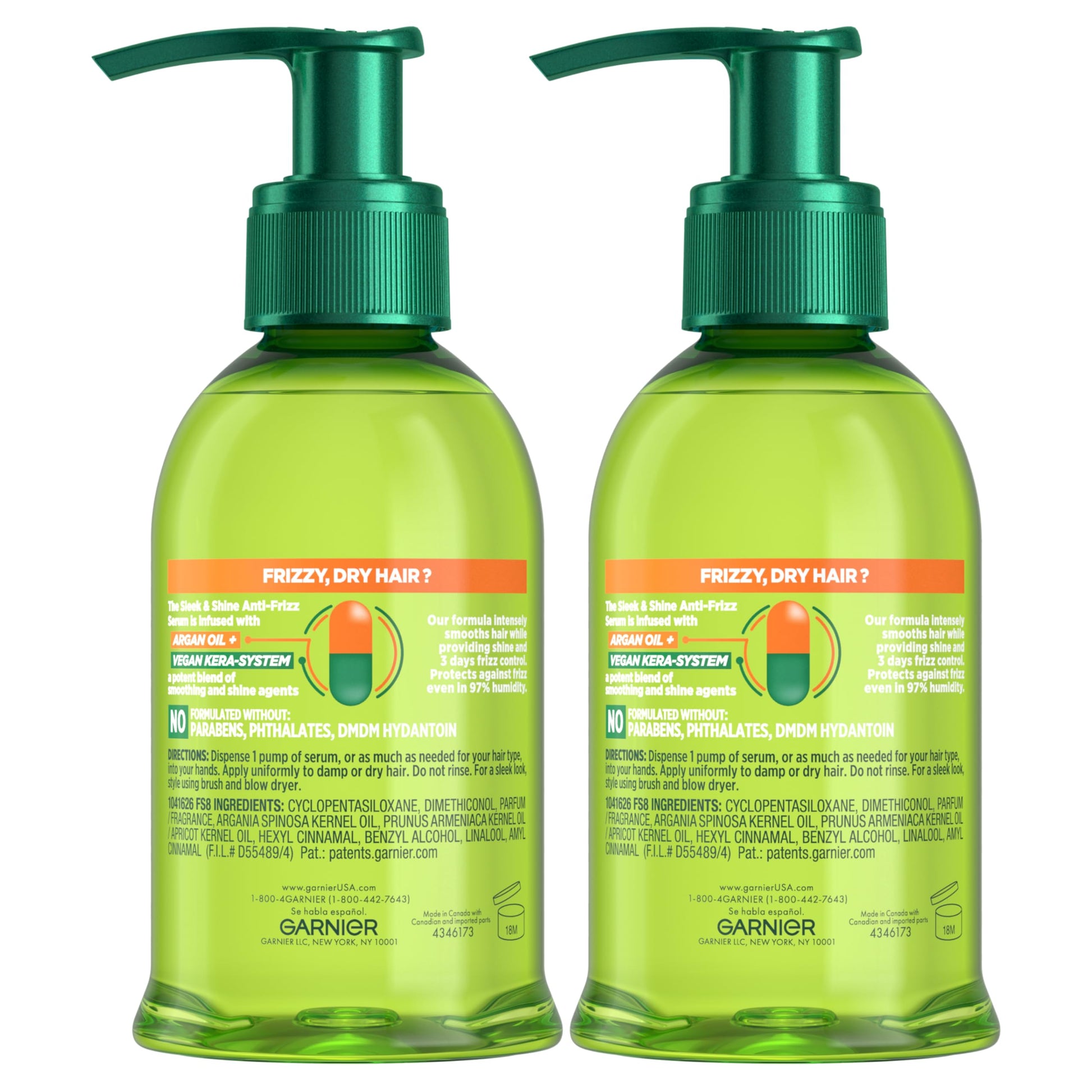 Garnier Fructis Sleek & Shine Anti-Frizz Serum for Frizzy, Dry Hair, Argan Oil, 5.1 Fl Oz, 2 Count (Packaging May Vary)