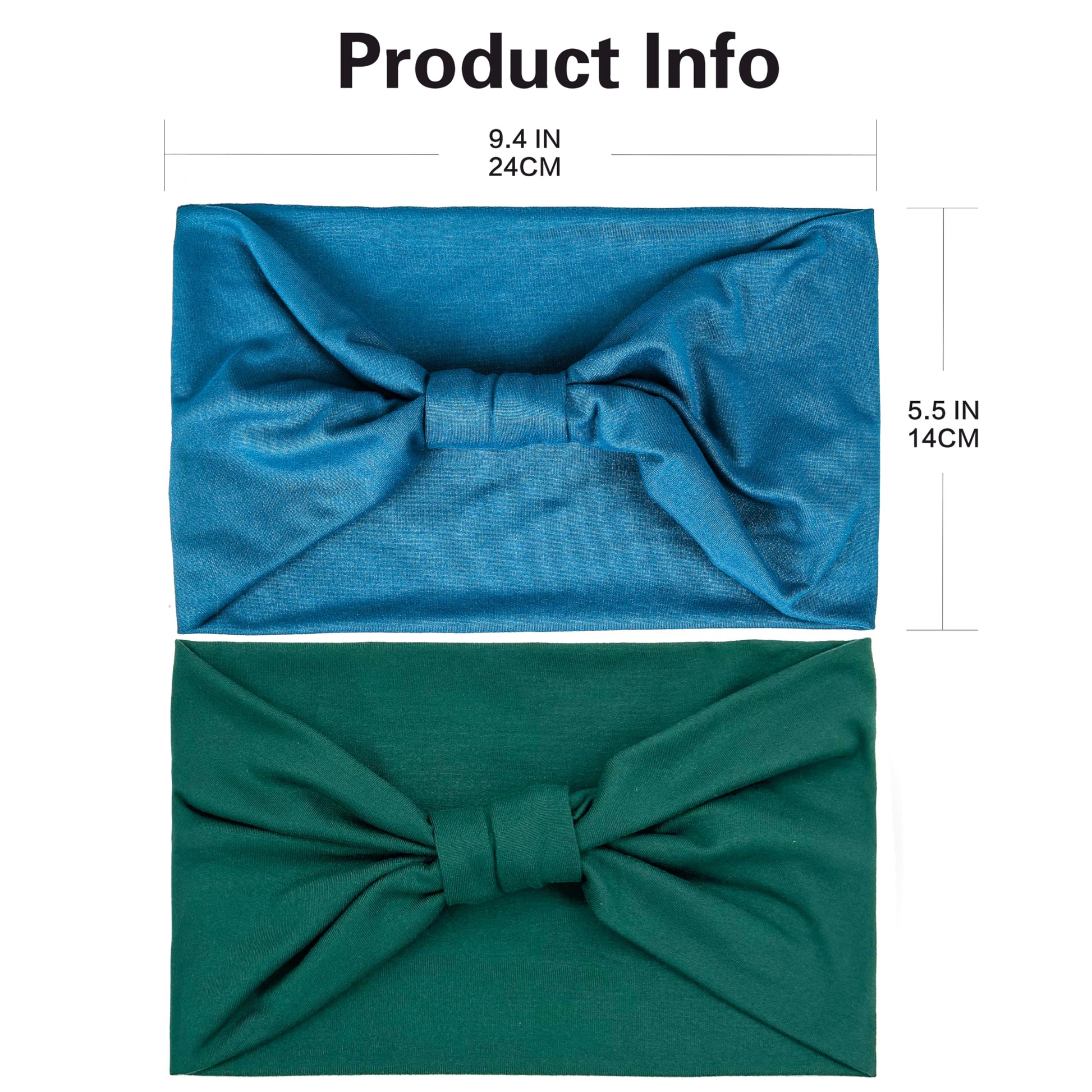 GiLi 2 Pack Wide Headbands for Women Boho African Knotted Non Slip Fashion Hair Bands Yoga Running Sports Workout Gym Head Wraps Elastic Soft Cotton Cloth Turbans Bandana for Girls (Dark Green, Teal)