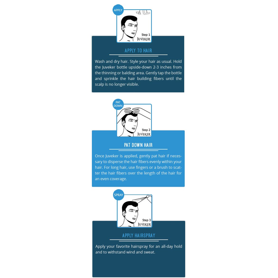- JUVEKER is made in Canada. It uses tiny fibers to conceal thinning hair give the impression of fuller hair.