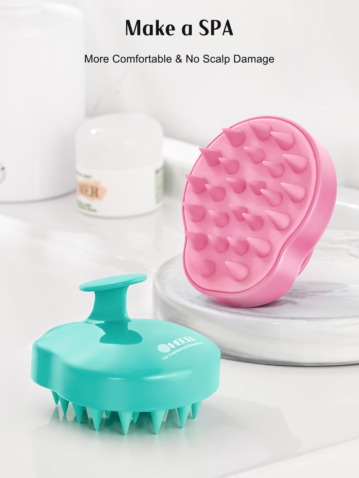 HEETA Hair Scalp Massager Shampoo Brush 2 Pack, Soft Silicone Bristles to Remove Dandruff, Waterproof Hair Scrubber for Both Wet Dry Hair, Suitable for Men & Women (Green & Pink)