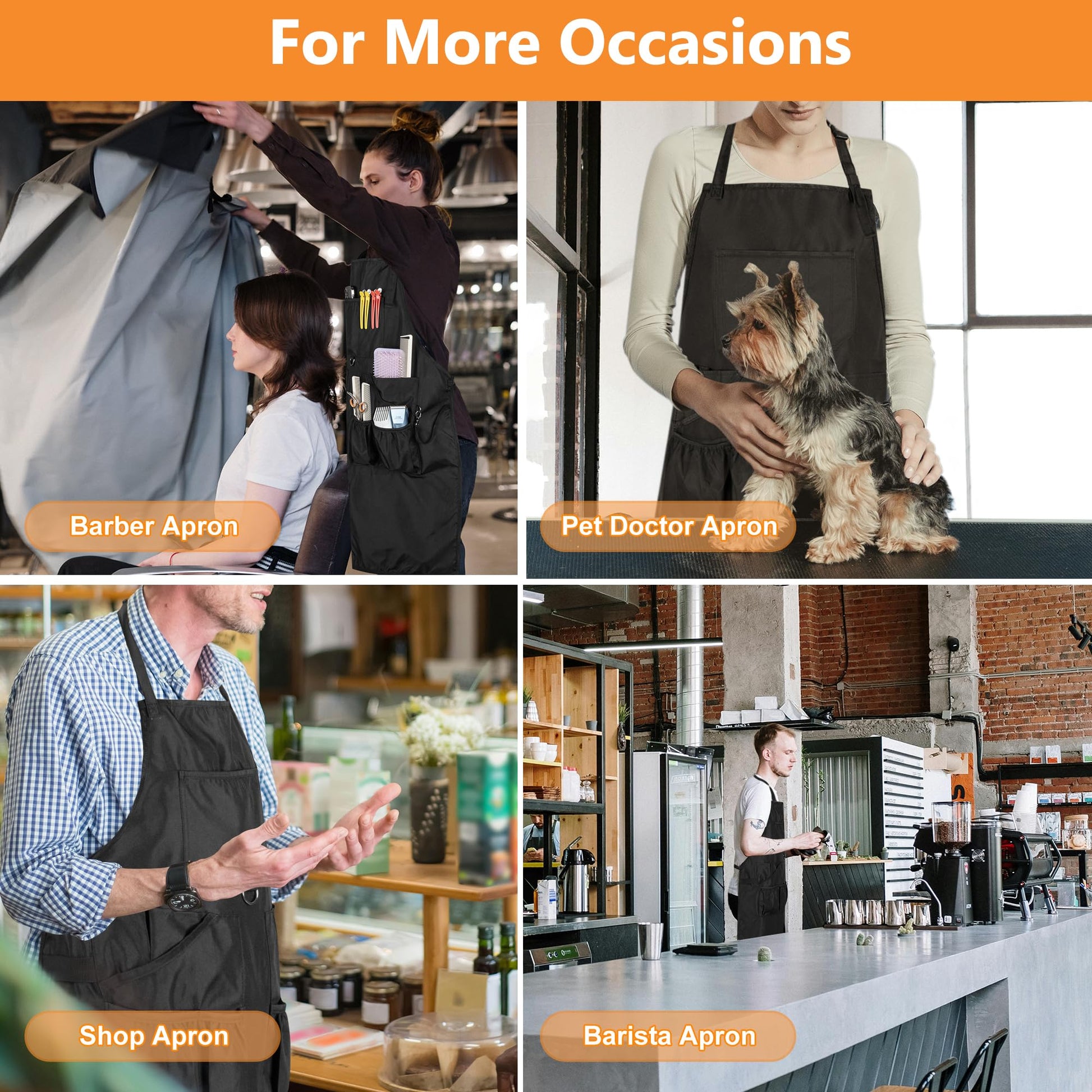 - Multiple Occasions: Good apron for professional hairdresser, cosmetology, barber, stylist. Suitable for florist, coffee shop, hotels, shop, bbq, bar, pet shop and more; a good helper for potters, gardener, artist, pet doctors, or painters