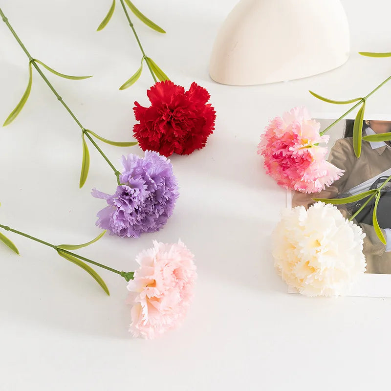 Meticulously crafted large white silk carnation with exceptional attention to detail, providing the timeless elegance of natural carnations without maintenance requirements. Each petal features precise veining and texture, creating a botanically accurate representation ideal for permanent floral arrangements, wedding décor, or sophisticated home styling.
