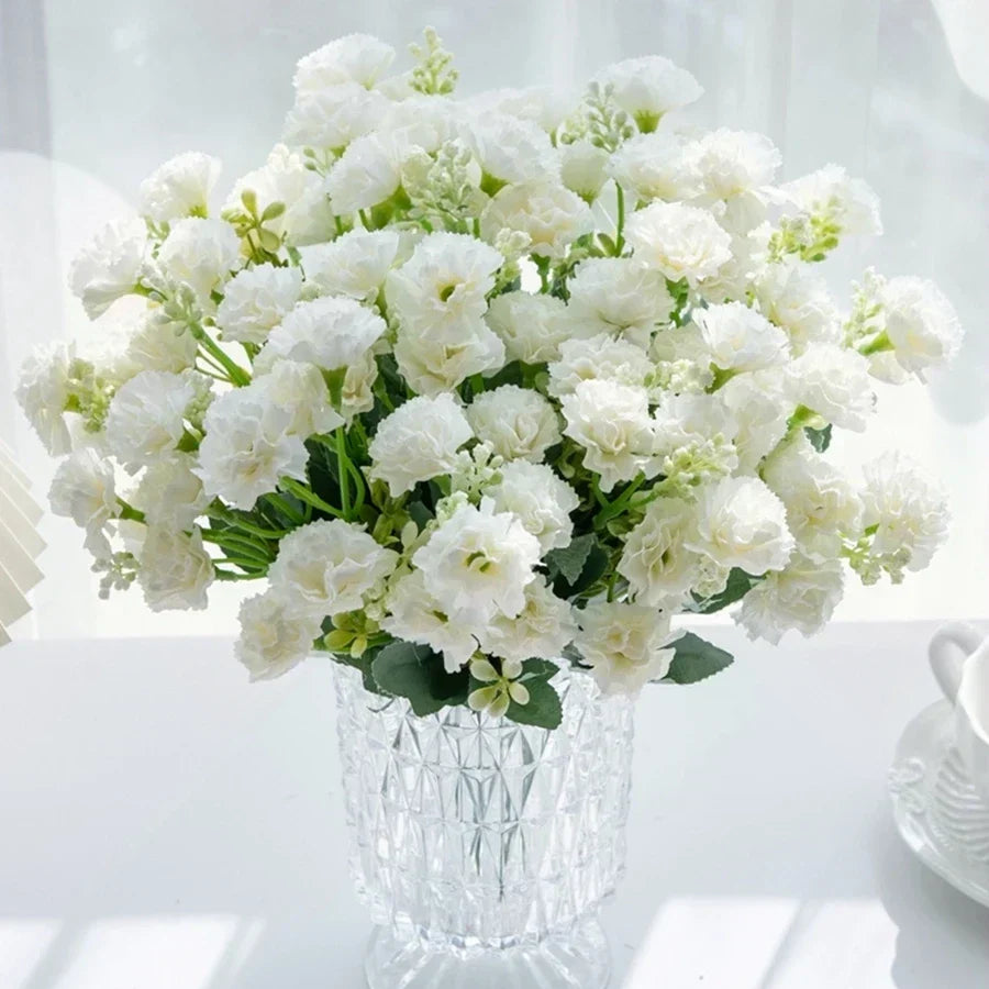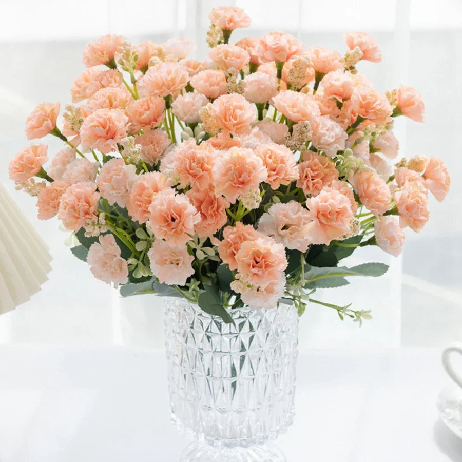 Delicate Mini Carnation Floral Stems feature clustered blooms on sturdy stalks, perfect for professional floral arrangements. These versatile flowers add texture and dimension to bouquets while maintaining excellent vase life. Ideal for both focal and filler applications in sophisticated floral designs.