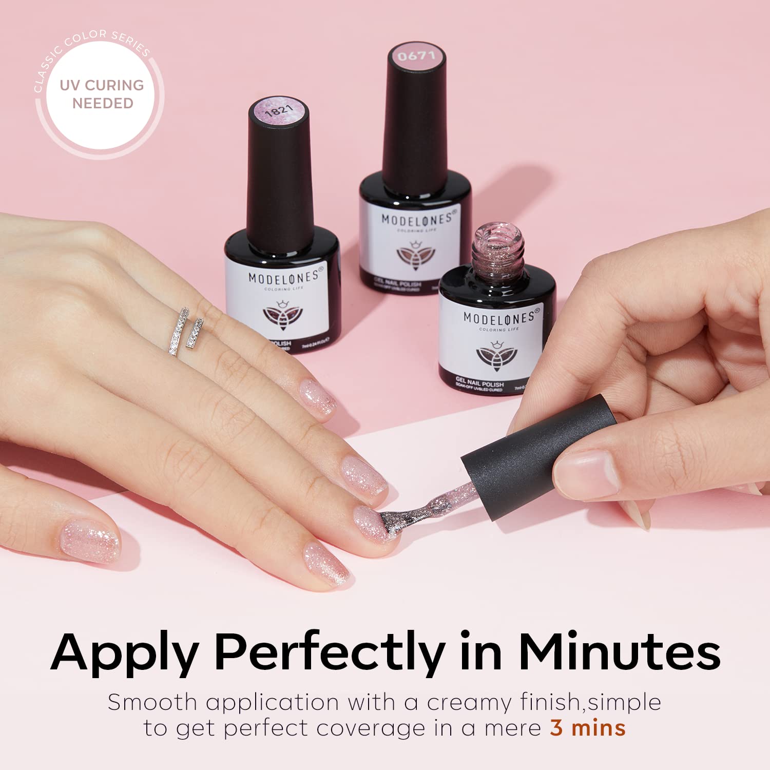 - Healthy & Easy Application: Modelones Pink Nude Neutral Gel Nail Polish Set featuring healthy and 11 natural ingredients. You can DIY your nails the way you want without causing any harm to your nails and the environment. The High-pigment formula that applies smoothly on nails, you can easily switch from nail style retro to modern, elegance to classic, meeting various needs for works, outfits and events, showing your unparalleled beauty