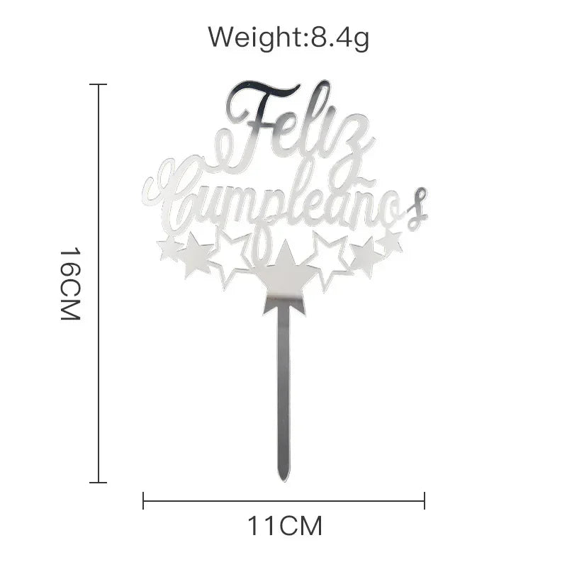 Celebrate birthdays with a touch of cultural flair using this Spanish Feliz Cumpleaños cake topper. Designed to add an elegant and festive message to any birthday cake, it perfectly complements your party décor while highlighting the joyous occasion. Crafted for easy placement and removal, this topper combines style and convenience to enhance your celebration with a meaningful greeting.